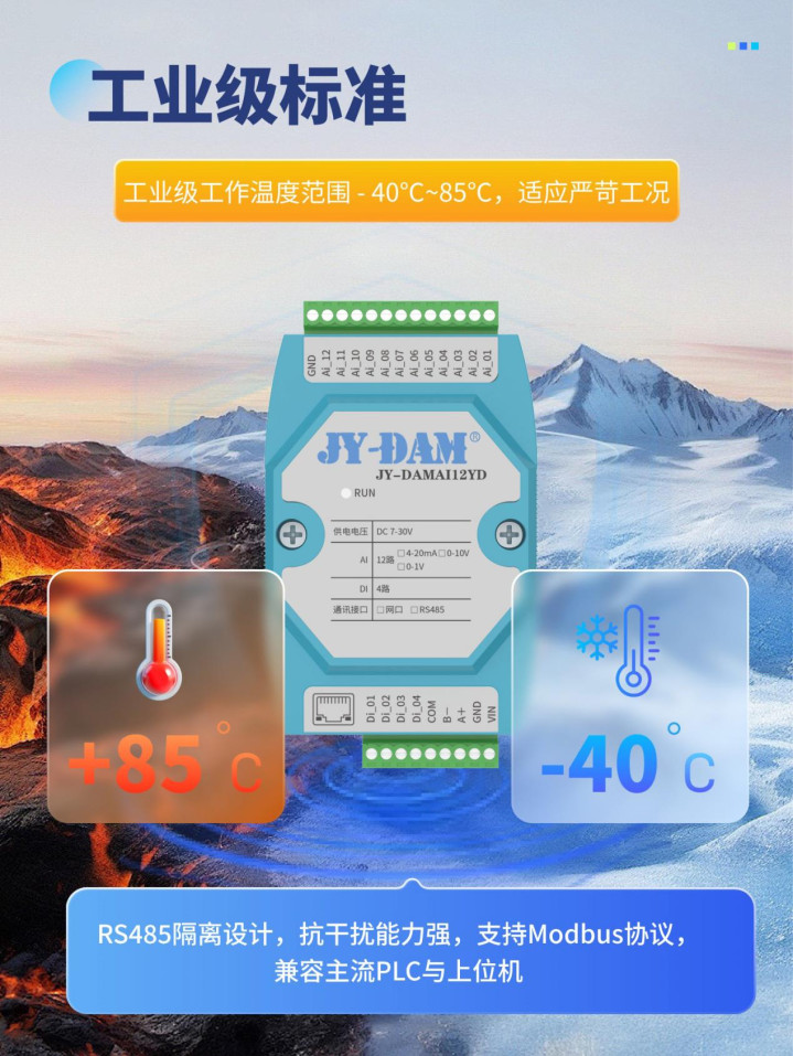 高精度模拟量采集模块是物联网(IoT)系统中“信号感知-数据转化-联网传输”的核心组件,其功能围绕“精准采集、稳定处理、灵活联网、智能适配”四大核心展开,既覆盖基础的信号转换需求,又延伸出适配工业、农业、医疗等物联网场景的增值功能。